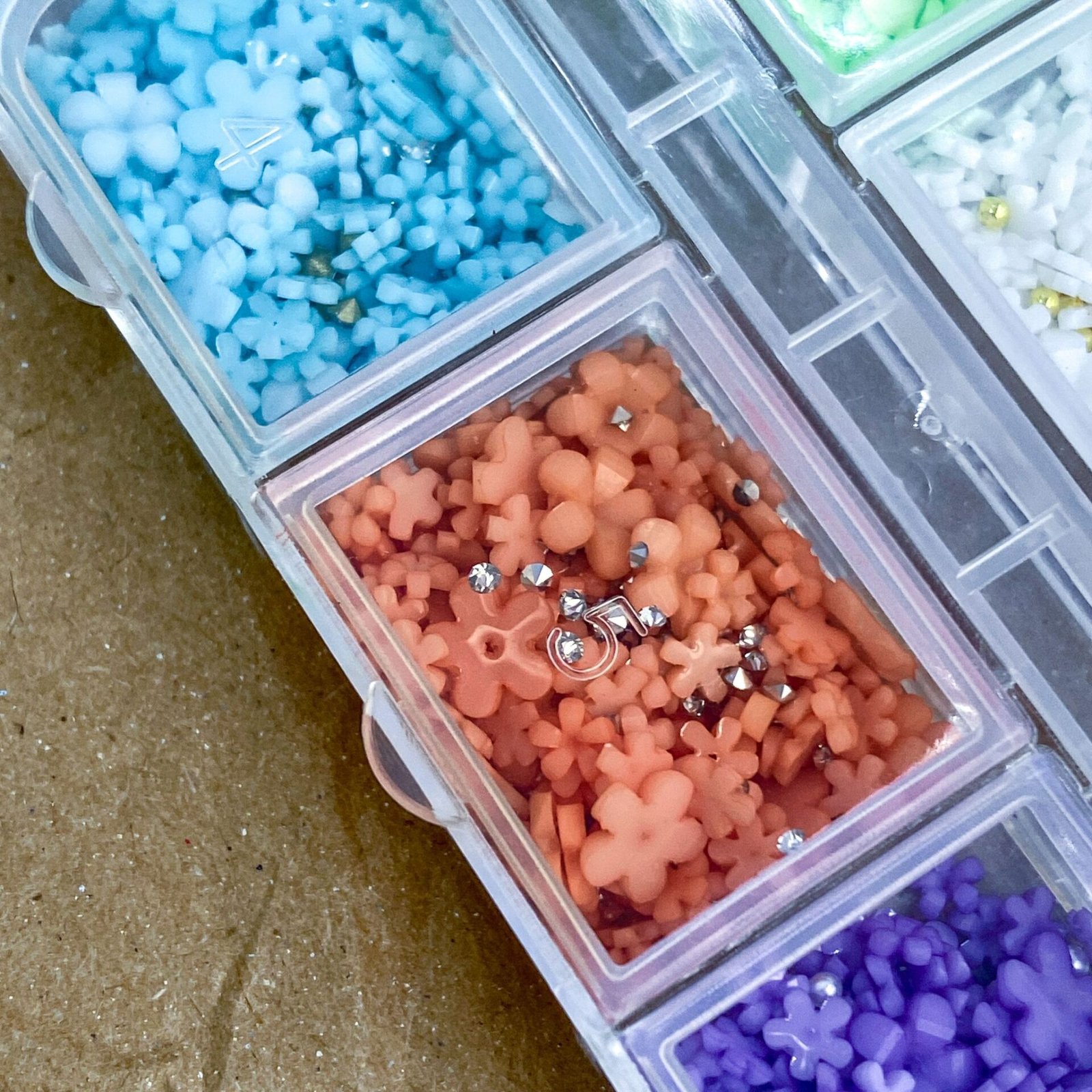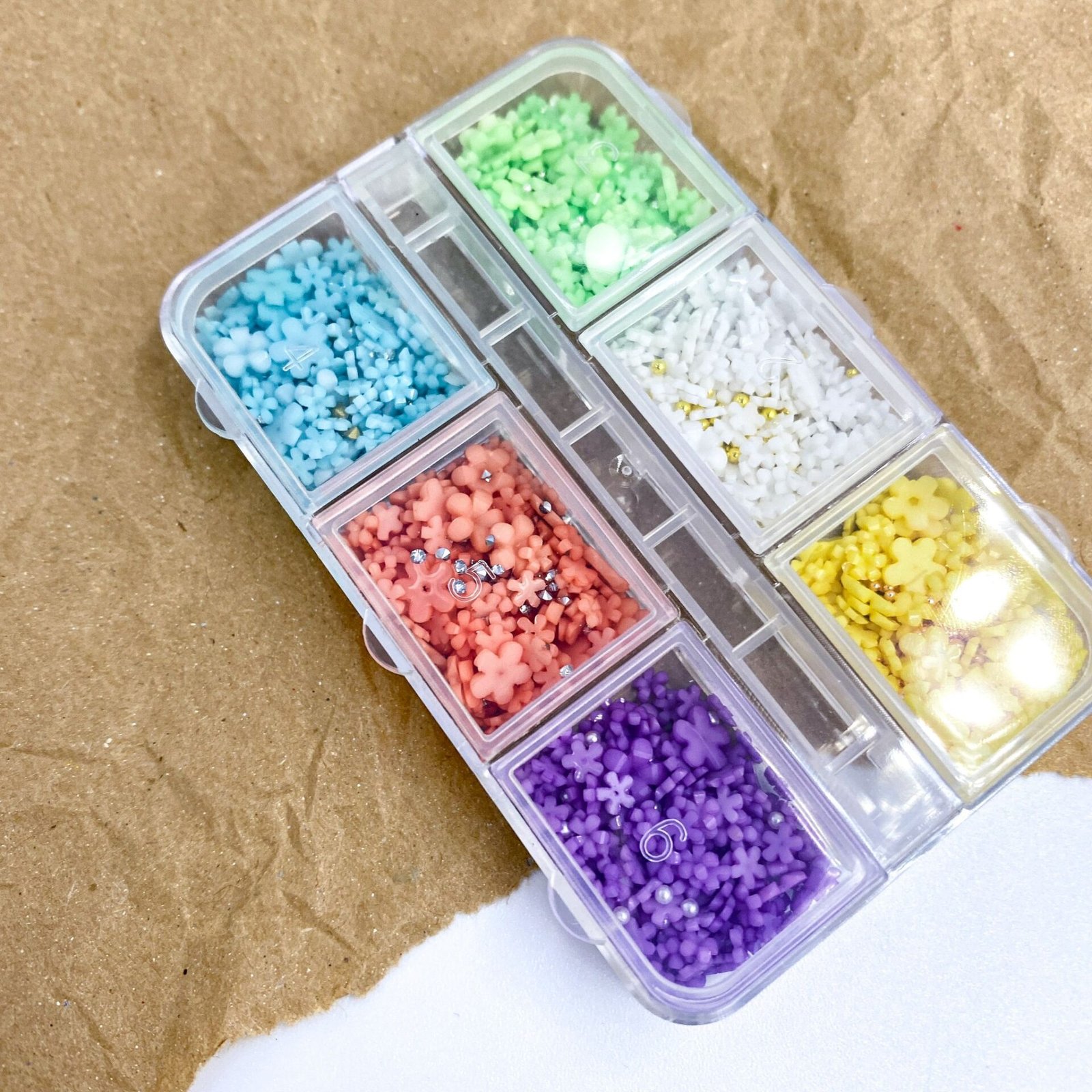Pe lângă florile 3D din acril,colorate în diverse nuanțe, in fiecare cutiuță veti găsi si caviar metalic sau strasuri ce va vor completa designul dorit.